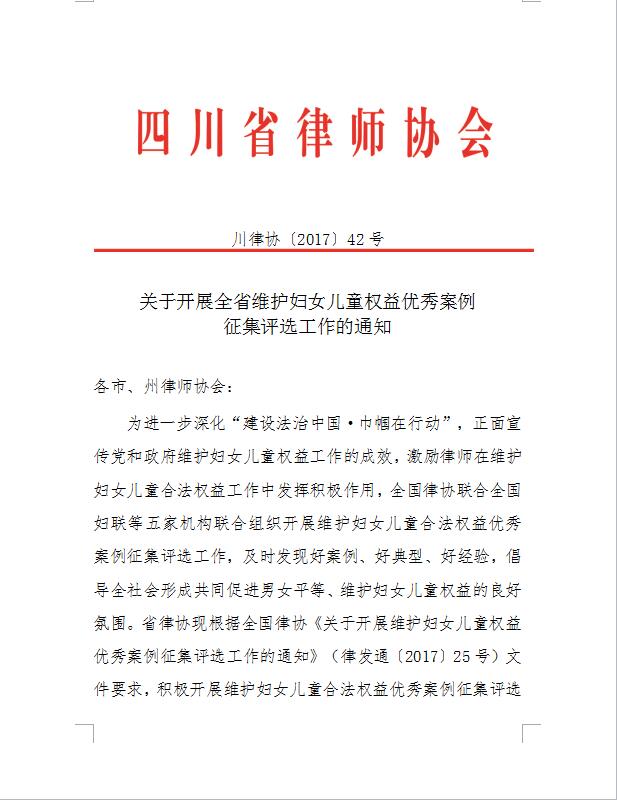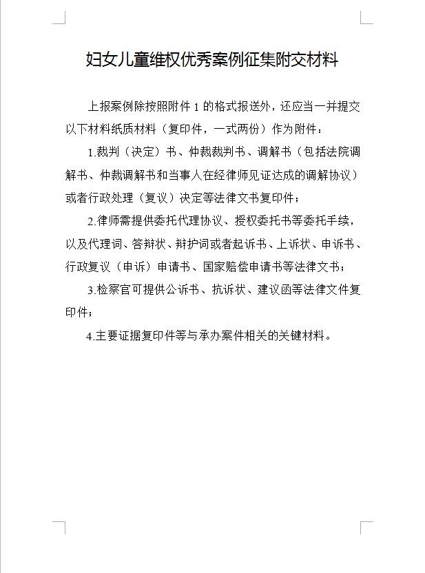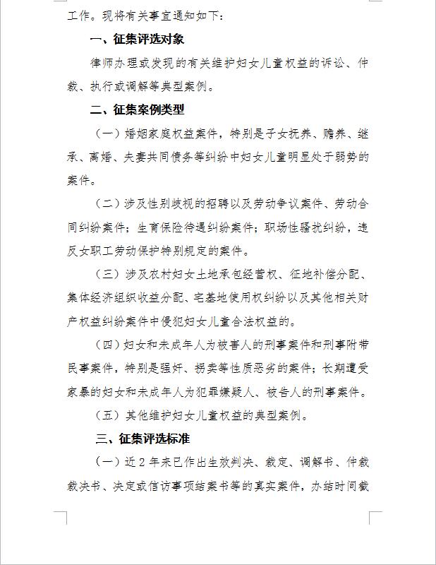关于开展全省维护妇女儿童权益优秀案例征集评选工作的通知