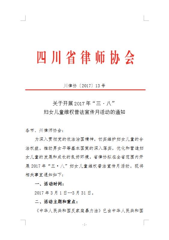 关于2017年“三·八”妇女儿童维权普法宣传月活动的通知