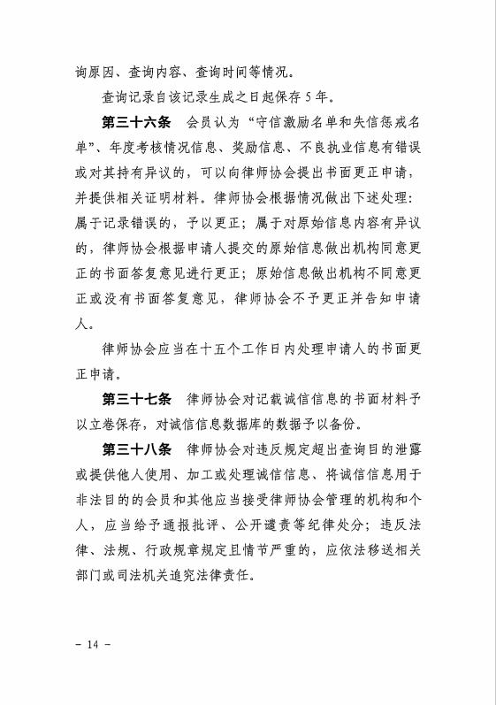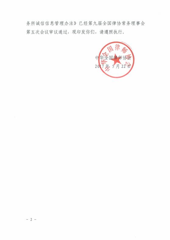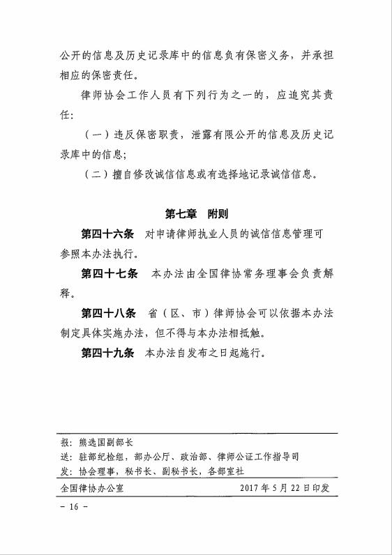 关于印发《律师和律师事务所诚信信息管理办法》的通知