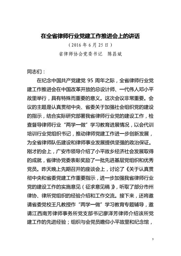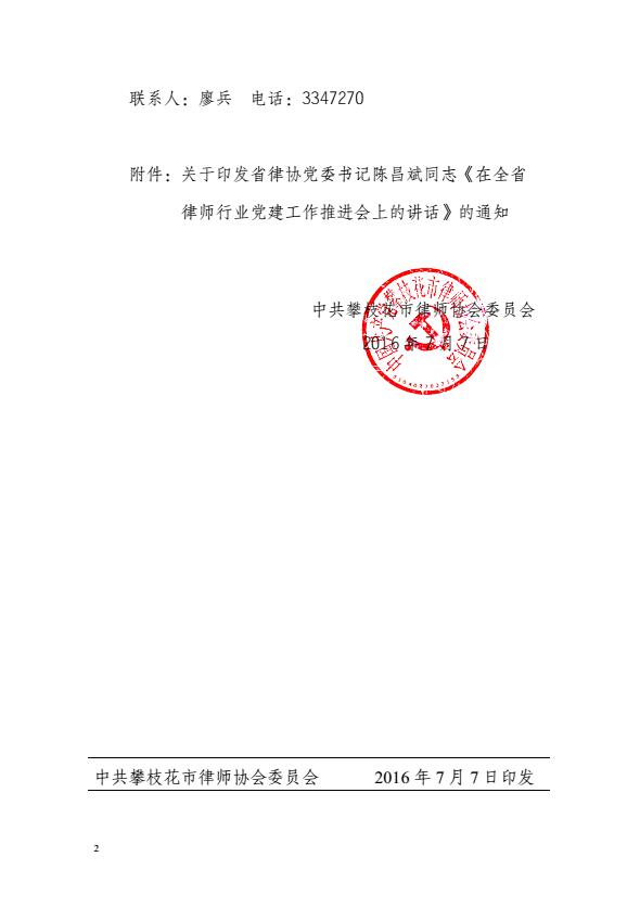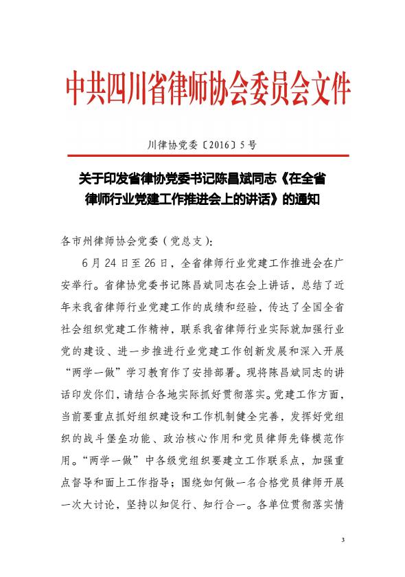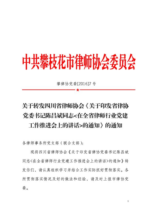 关于转发四川省律师协会《关于印发省律协党委书记陈昌斌同志<在全省律师行业党建工作推进会上的讲话>的通知》的通知
