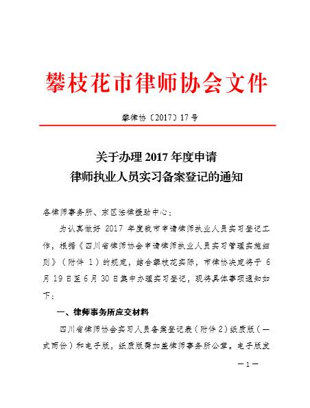 关于办理2017年度申请律师执业人员实习备案登记的通知