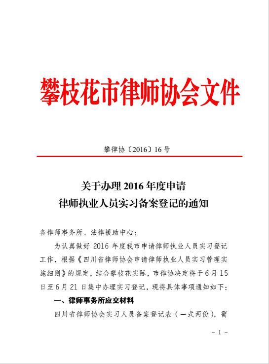 关于办理2016年度申请律师执业人员实习备案登记通知
