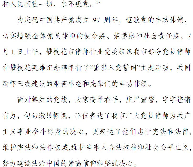 重温誓词 牢记初心 -攀枝花市律师行业党委组织庆“七一”重温入党誓词活动