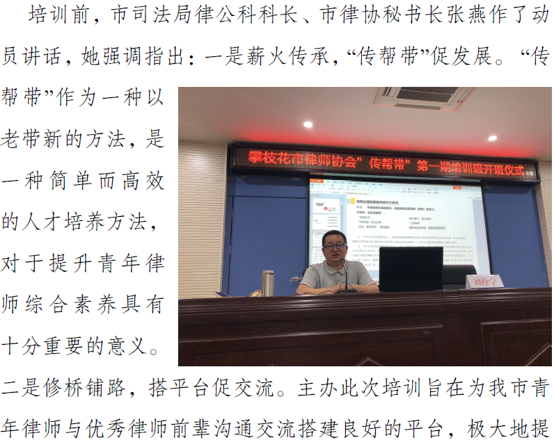 传道授业大培训 倾囊相授促发展 —攀枝花市青年律师“传帮带”第一期培训班开讲